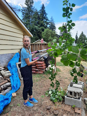 We went to Heather's and helped in her yard and got a TON done!! We also uprooted a rather small Washington blackberry bush that was still humongous. They're everywhere here and now they have fruit!! You literally just pull over on the side of the road and pick them, like, they're on every corner. #BLACKBERRYSEASONISHERE then we helped a lady in our ward paint her house which was fun, and got PIZZA WOOO that night we went to the beach to visit some Sisters it was a good, good day.
